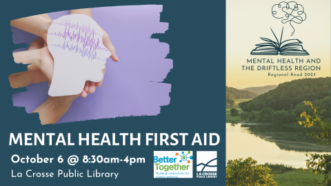 Mental Health First Aid is an 8-hour education program that introduces participants to the risk factors and warning signs of mental health problems in adolescents or adults, builds an understanding of the importance of early intervention, and teaches individuals how to help an adolescent or adult in crisis or experiencing a mental health challenge. This training is sponsored by Better Together in La Crosse County. There is no cost to attend and registration is required. Please register here.