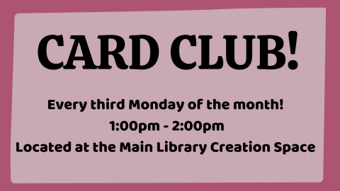 Calling all card makers, let’s get together and share our passion for making cards. Each session, the library will prep two cards based on a theme or on a creative fold. Then with time permitting take those new ideas and create a few more cards. Registration is required call 608-789-7145 or email programteam@lacrosselibrary.org Seating is limited.