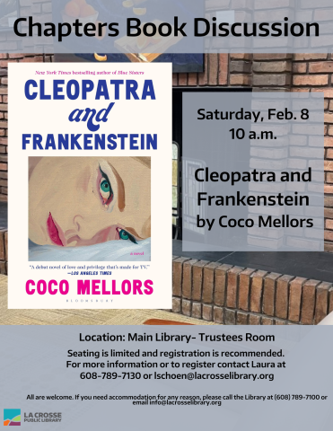 Chapters is the La Crosse Public library's monthly book discussion group featuring popular fiction covering a variety of genres. Our discussions are wonderful opportunities to connect with fellow book lovers to discuss a new title each month in a relaxed and fun environment.