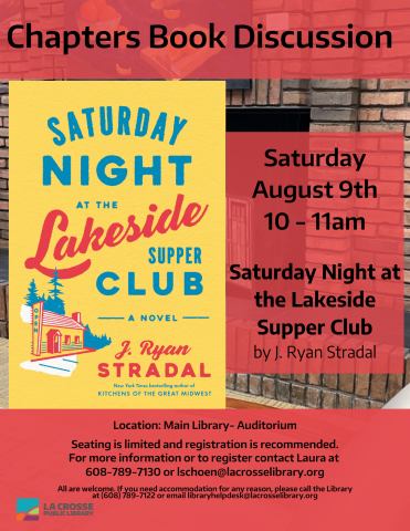 Chapters is the La Crosse Public library's monthly book discussion group featuring popular fiction covering a variety of genres. Our discussions are wonderful opportunities to connect with fellow book lovers to discuss a new title each month in a relaxed and fun environment.