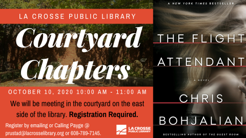 Looking for a relaxing start to your weekend? Join us Saturday, October 10th 10:00 a.m. in the library's charming outdoor "secret" courtyard for a discussion of The Flight Attendant by Chris Bohjalian. Seating is limited and registration is required.