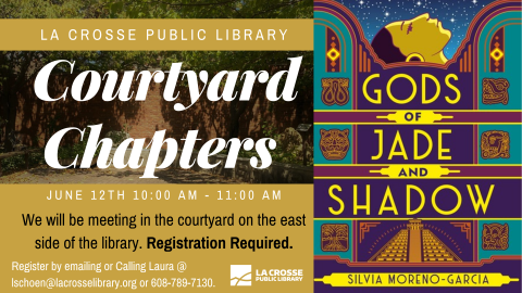 Join us Saturday, June 12th 10:00 a.m. in the library's charming outdoor "secret" courtyard for a discussion of Gods of Jade and Shadow by Silvia Moreno-Garcia.