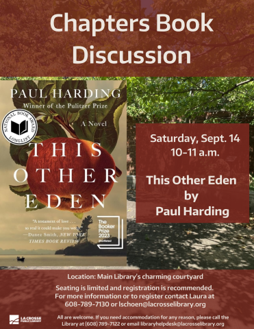 Chapters is the La Crosse Public Library's monthly book discussion group featuring popular fiction covering a variety of genres.