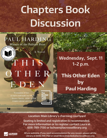 Chapters is the La Crosse Public Library's monthly book discussion group featuring popular fiction covering a variety of genres.