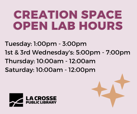 The La Crosse Public Library Creation Space provides an opportunity for the community to explore, create, invent and collaborate with others.