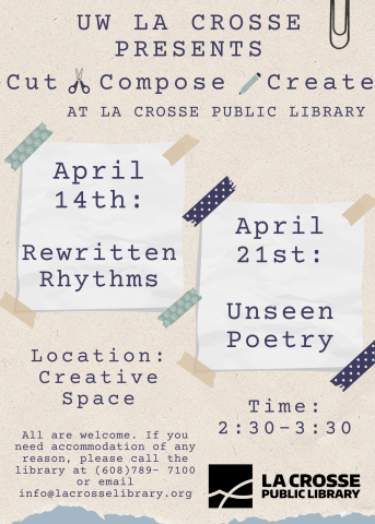 Join us for a program put on by UWL's Recreational Therapy students! Each week will be something exciting and different. This event will focus on making poetry out of music lyrics.