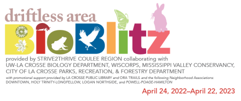 For more info visit the Strive2Thrive website here: https://strive2thrivecr.org/our-projects/driftless-area-bio-blitz/#:~:text=Bioblitz%3A%20an%20event%20that%20focuses,wildlife%20in%20the%20Driftless%20Area.