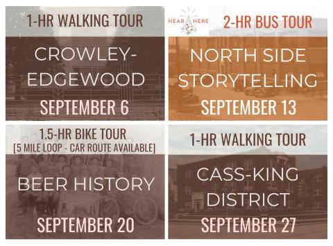 This tour is in partnership with Hear, Here, a storytelling public history project. On the tour, we will listen to first-hand accounts from the early to mid 20th century about North Side industry, families, and culture. Tour guides will also encourage participants to share stories of their own, if willing. This tour will take place on a coach bus, and will leave from the Library and drop participants back at the Library by 7:30pm.