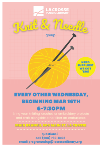 Bring your knitting, crochet, or embroidery projects and craft alongside other fiber art enthusiasts!