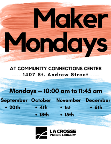 2nd and 4th Monday of the month 10-11:45 am. Projects subject to change and supplies are limited.