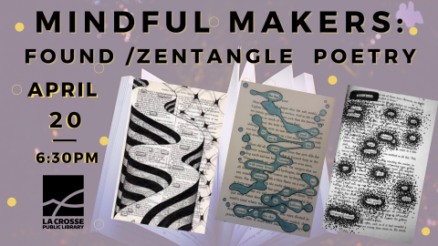 Join us for an evening of creativity and mindfulness! On Wednesday, April 20 you have the option to join us online or in person. While our hands are busy creating, we’ll open up our minds as we're joined by art therapist, who will share tips on meditative doodling as we combine poetry and art to create a found / zentangle poem in celebration of National Poetry Month