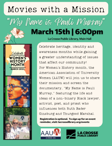 For Women’s History Month, the La Crosse Branch of AAUW (American Association of University Women) will screen the 2021 documentary, "My Name is Pauli Murray," featuring the life and contributions of this little-known and visionary legal scholar, activist, poet and Episcopal priest. Murray, a gender nonconforming trailblazer, influenced Thurgood Marshall, Ruth Bader Ginsburg, and Eleanor Roosevelt, laying down a path for generations to come.
