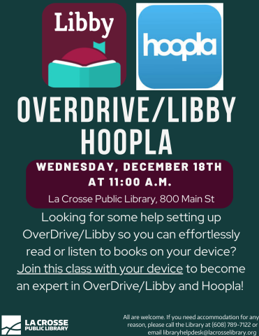 Looking for some help setting up OverDrive/Libby and Hoopla so you can effortlessly read or listen to books on your device? Join this class with your device to become an expert in OverDrive/Libby and Hoopla! Devices recommended, but not necessary.
