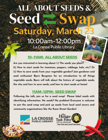 Join us for a celebration of all things seeds, featuring conversations with gardening experts and a community wide seed swap!