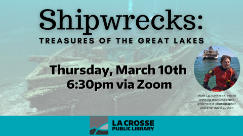 Join us for an evening with internationally acclaimed and award-winning shipwreck photographer Cal Kothrade. In this presentation, Cal will take us on a visual tour of ten of the most photogenic and commonly dived shipwrecks in the Great Lakes. Breathtaking images and a brief story of each tragedy help to tell the tale of life, and loss on the tempestuous Great Lakes.
