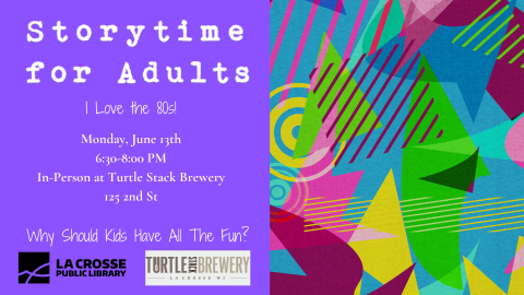 Why should children have all the fun? Our monthly 'Storytime for Adults' meets the second Monday of the month at the Turtle Stack Brewery. Join us to hear your favorite local librarians and performers read some of our favorite short stories and essays. Beer and beverages are available for purchase.