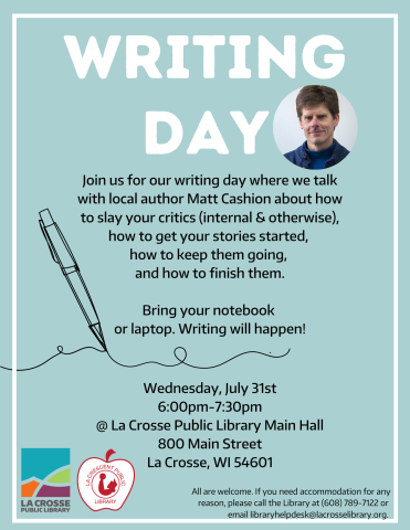 Join us for our writing day where we talk with local author Matt Cashion about how to slay your critics (internal & otherwise), how to get your stories started, how to keep them going, and how to finish them.