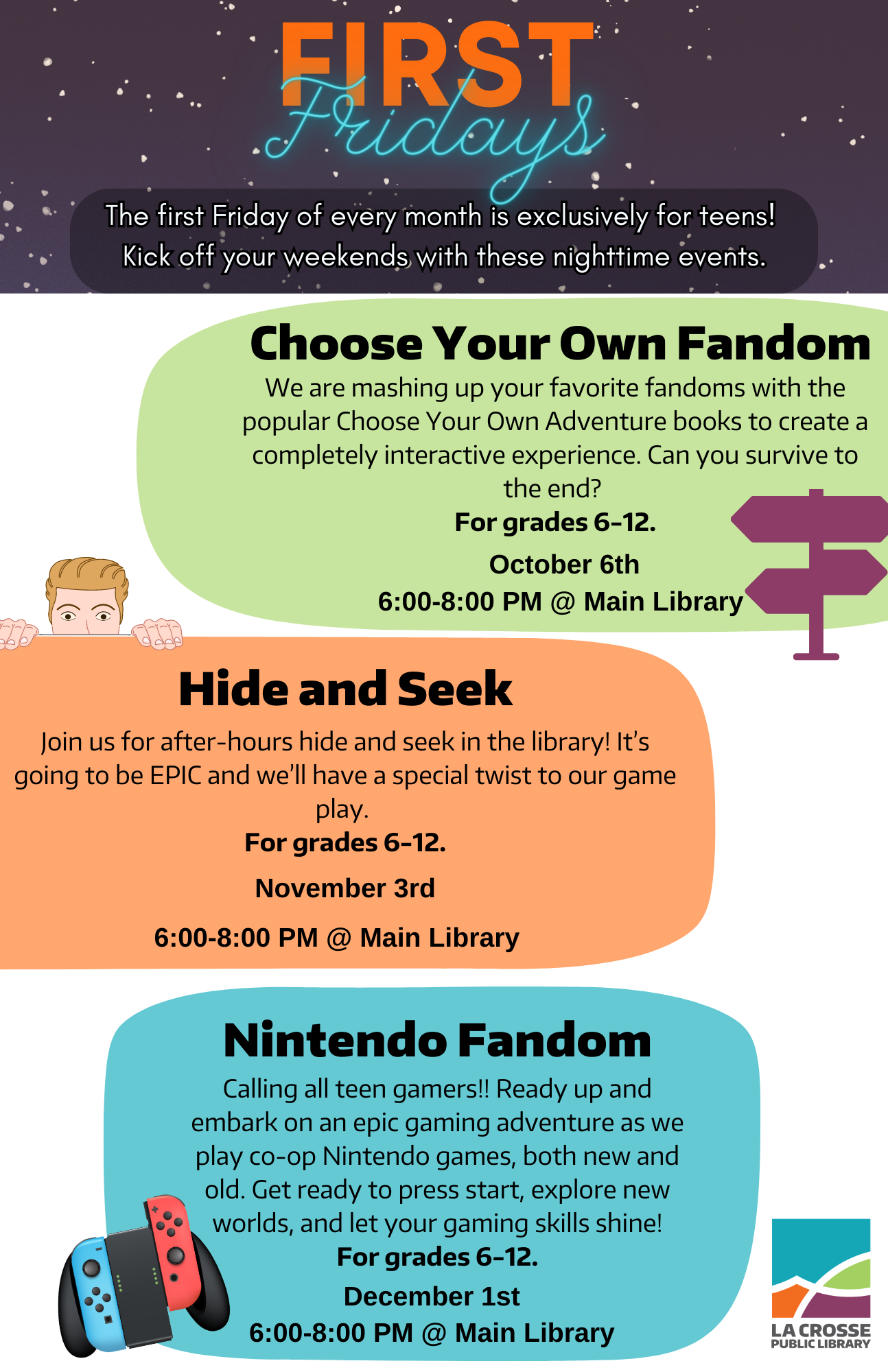 The La Crosse Public Library Children and Families Department offers early literacy services, family enrichment activities, youth and teen collections, community outreach, tours, technology, and programs which are fun for all ages. Our expert staff can find a great book for any reader and are pleased to bring these services out into our community whenever we can. For more information about our services or programs, contact us as 608-789-7100 or info@lacrosselibrary.org.